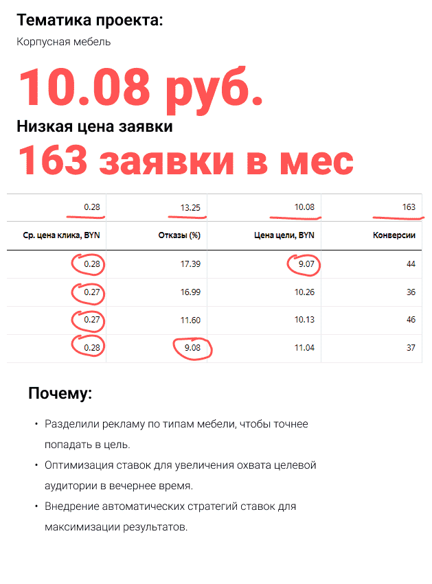 По мере накопления статистических данных, мы вносим необходимые коррективы, расширяем список исключающих ключевых слов, регулируем ставки и адаптируем стратегию контекстной рекламы в соответствии с текущими результатами.
